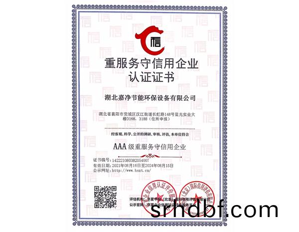 AAA級(jí)(ji)重服(fu)務(wù)守信用(yong)企業(yè)認(rèn)(ren)證證書