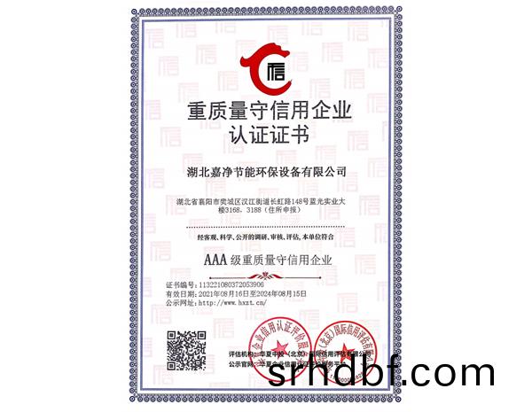 AAA級(jí)重質(zhì)量(liang)守信(xin)用企業(yè)(ye)認(rèn)證(zheng)證(zheng)書(shu)